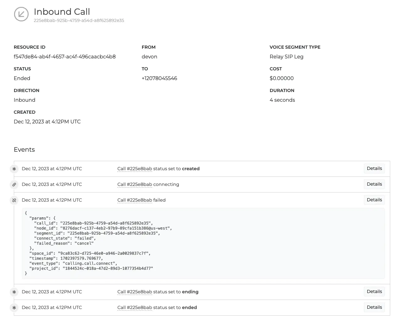 Thanks to Call Fabric's generalized handling of Resources, Logs for all Resource types are accessed from a central Logging tab in the SignalWire Space.