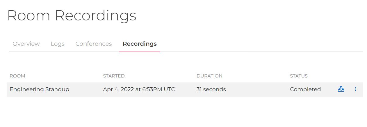 Record on Start starts a recording as soon as the room is opened. Recordings are accessible later in the Recordings tab in the Video section of your SignalWire Space.